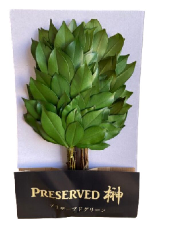 プリザーブドフラワーと同じく長期間使用出来るように保存加工(プリザーブド加工)を施した榊になります。特殊な染料を吸わせている為、 植物そのものの瑞々しさを保ちつつ柔らかで自然な仕上がりとなっています。