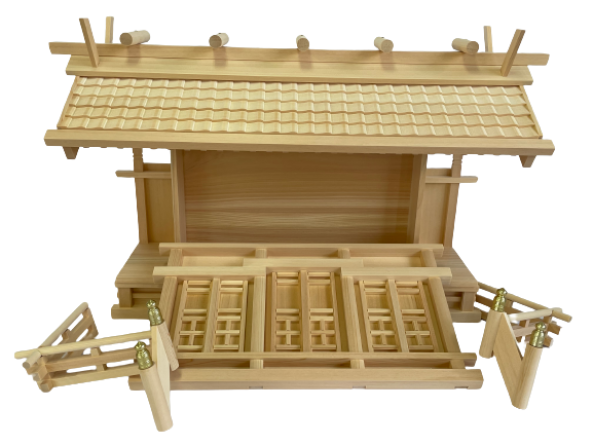 最高級の木曽桧で製作した特上唐戸通し屋根三社-中/富嶽セット。