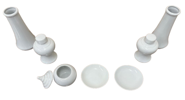 榊立5寸(2本)巾7.7x高さ15.1㎝ 瓶子3.5寸(2本)胴張6.1x高さ11.3 皿3寸 (2枚)巾9.1x高さ2㎝ 水玉2.3寸(1個)胴張7.4x高さ8.7㎝