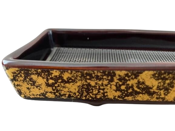 砂子金箔が施され、上品な輝きを放ちます。特殊ステンレス網が付属しており、線香を寝かせて使用することができます。